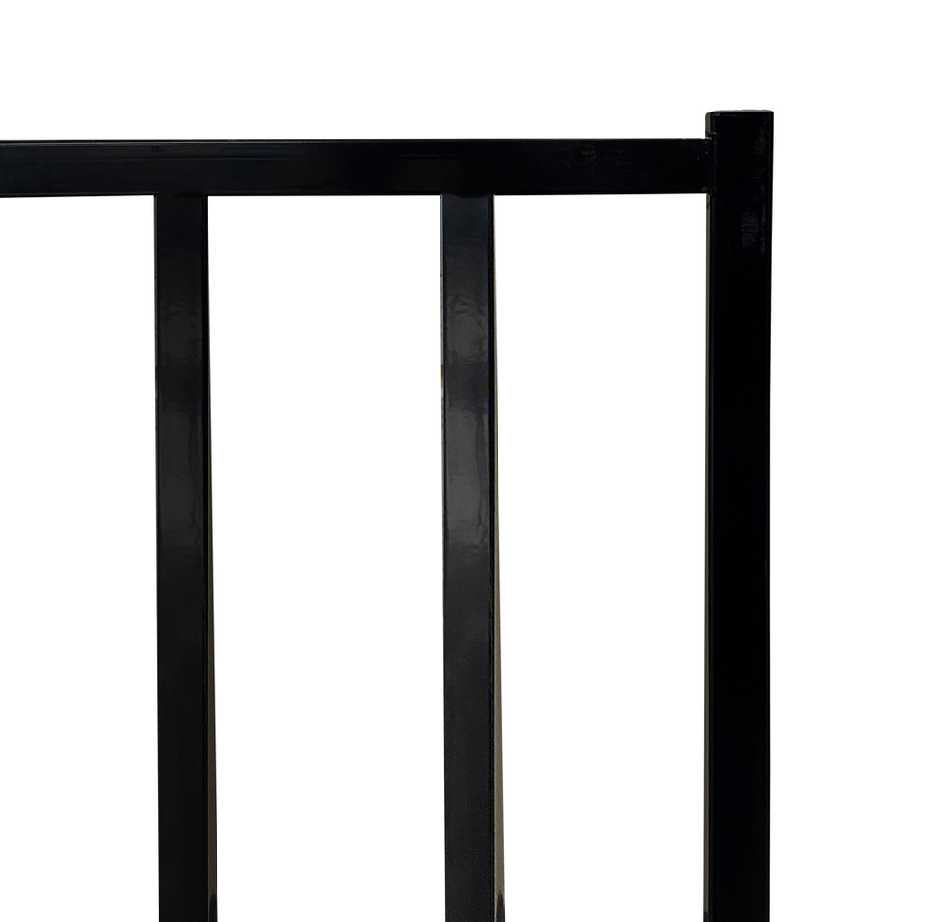 These black powder coated fence panels are ideal for crowd control and creating defined spaces at public events. First fence panel requires 2 bases and 1 joiner which are sold separately. each subsequent panel requires only one base and one joiner.. Perimeter tubing is 25mm x 25mm x 1.2mm square and internal vertical tubing is 20mm x 20mm x 1mm. Space between vertical bars is approximately 3.75"