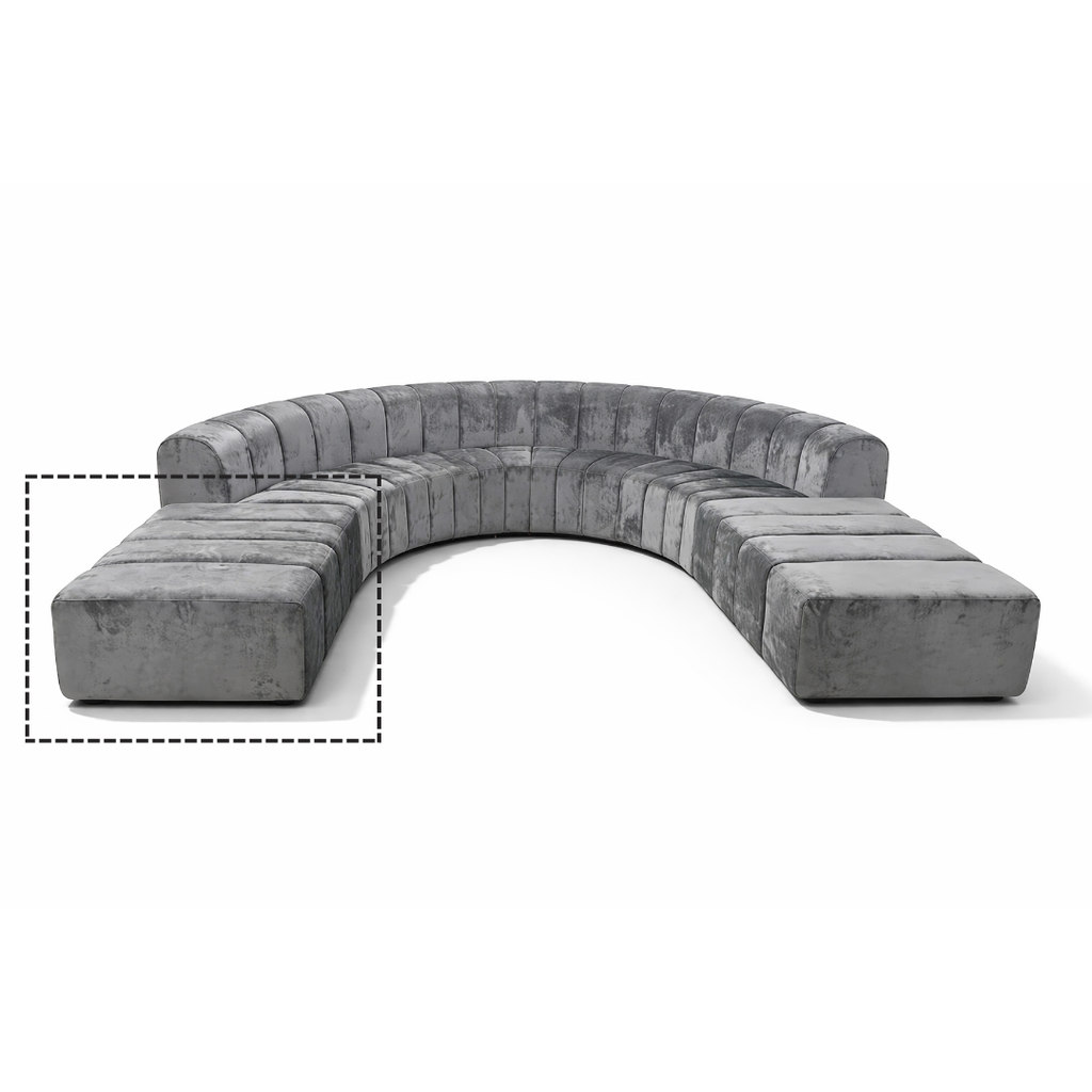Upholstered in smooth grey velvet and crafted with plush, supportive foam padding, the Zetel Ottoman balances comfort with modern design. It can be securely connected to rectangular sofa configurations or styled on its own as a standalone accent, adding flexibility and sculptural flow to both residential and commercial spaces.