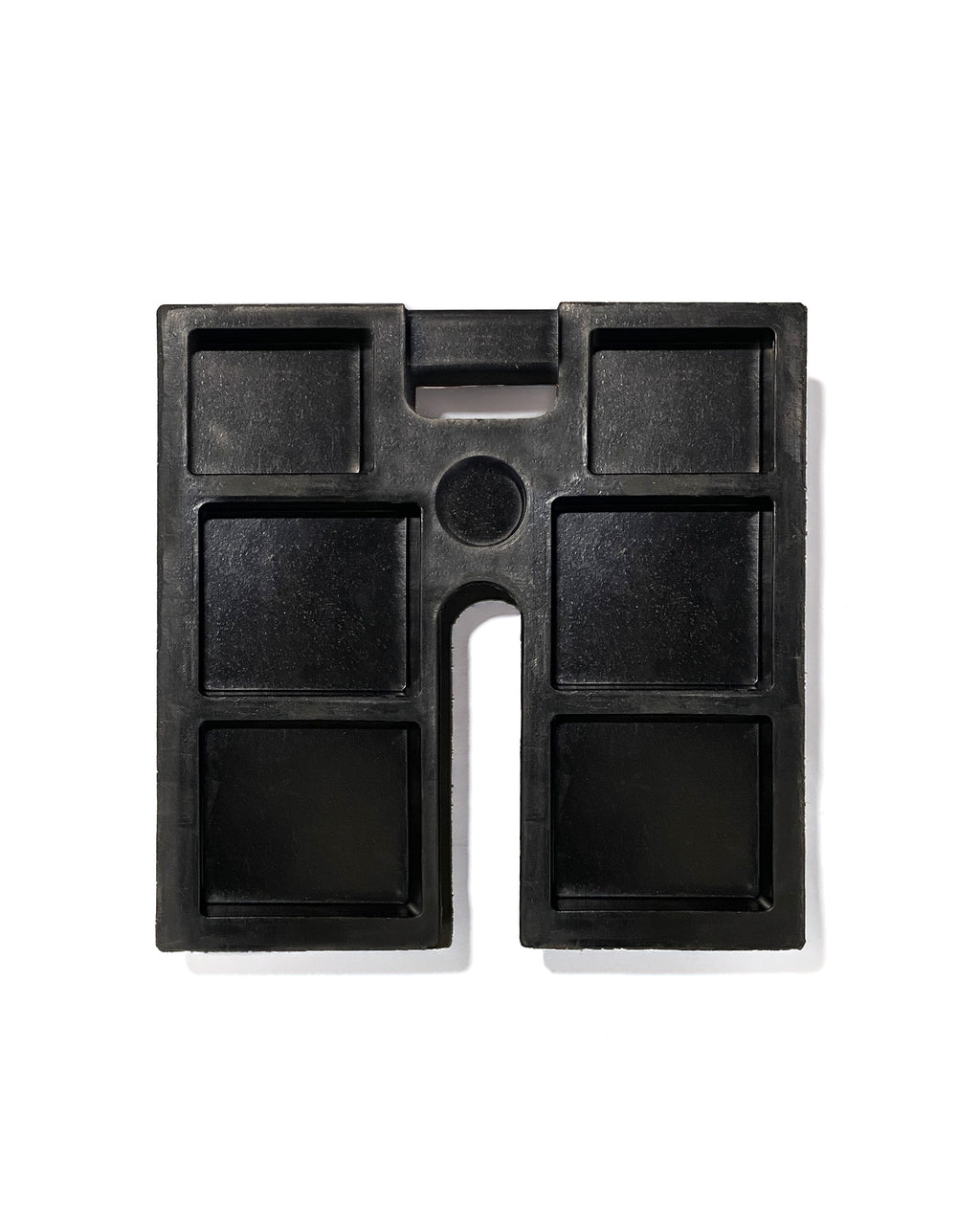 Nos poids de base sont disponibles en deux poids populaires, 20 lb. Il s'agit d'une base en caoutchouc de 18"x 18"x 2"avec une forme de fer à cheval conçue pour se placer facilement et rapidement sur un montant et une base avec une poignée de transport pratique.