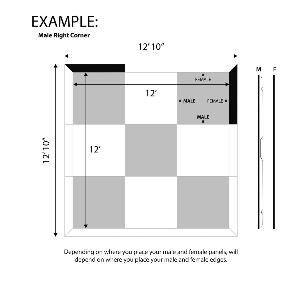Regardless of floor size, you will need 2 of these 4' Male Right Corner edges to accompany the others to complete your build