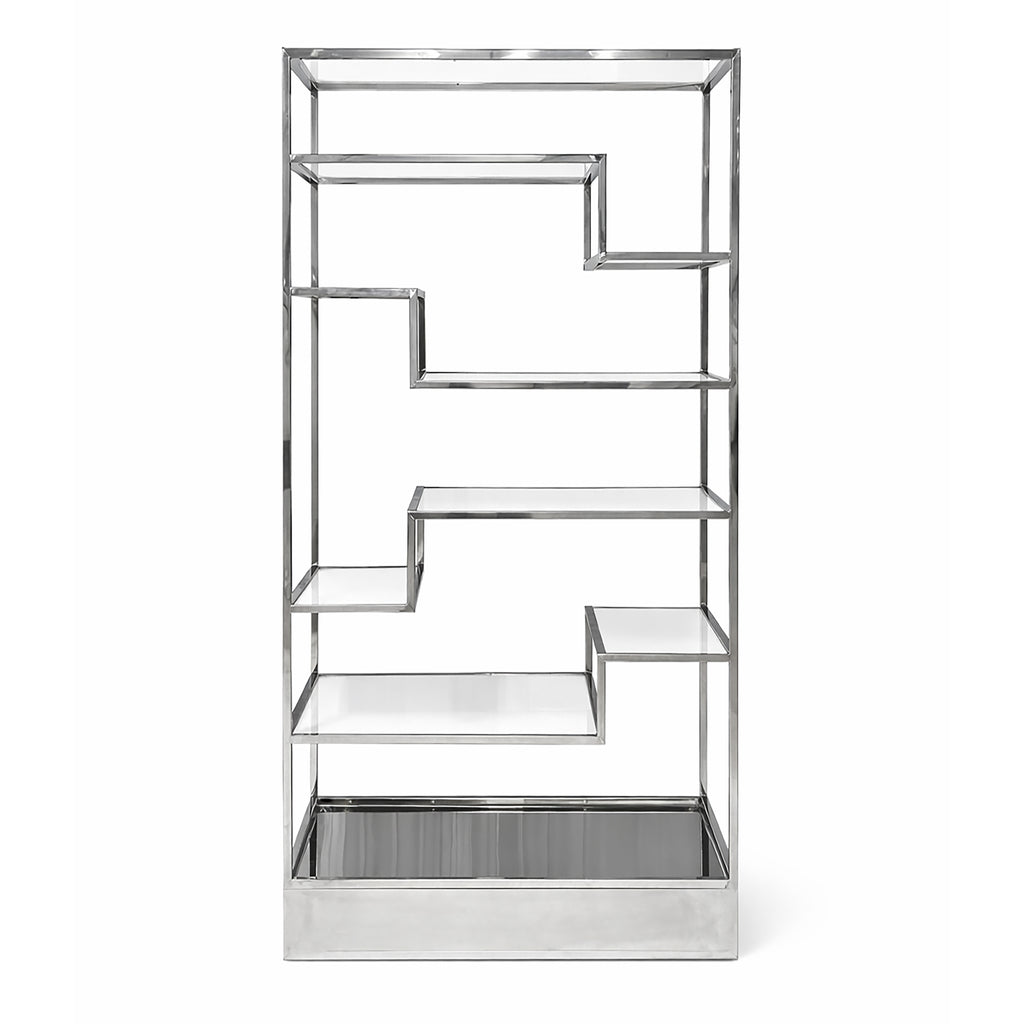 Constructed from stainless steel tubing with a wall thickness of 1.5mm. It features 5 shelves each made from 10mm high gloss acrylic.