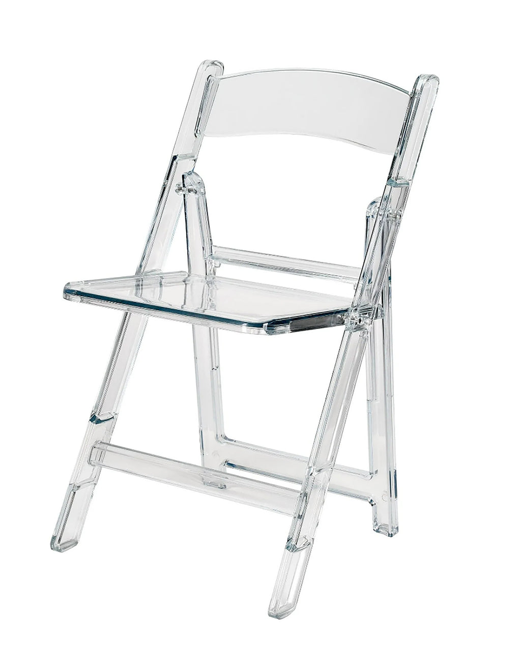 Our clear resin folding chairs are crafted from the finest virgin plastic. It is molded from 100% virgin polycarbonate which ensures durability and good looks.