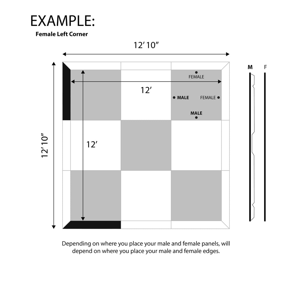 Regardless of floor size, you will need 2 of these 4' Female Left Corner edges to accompany the others to complete your build.