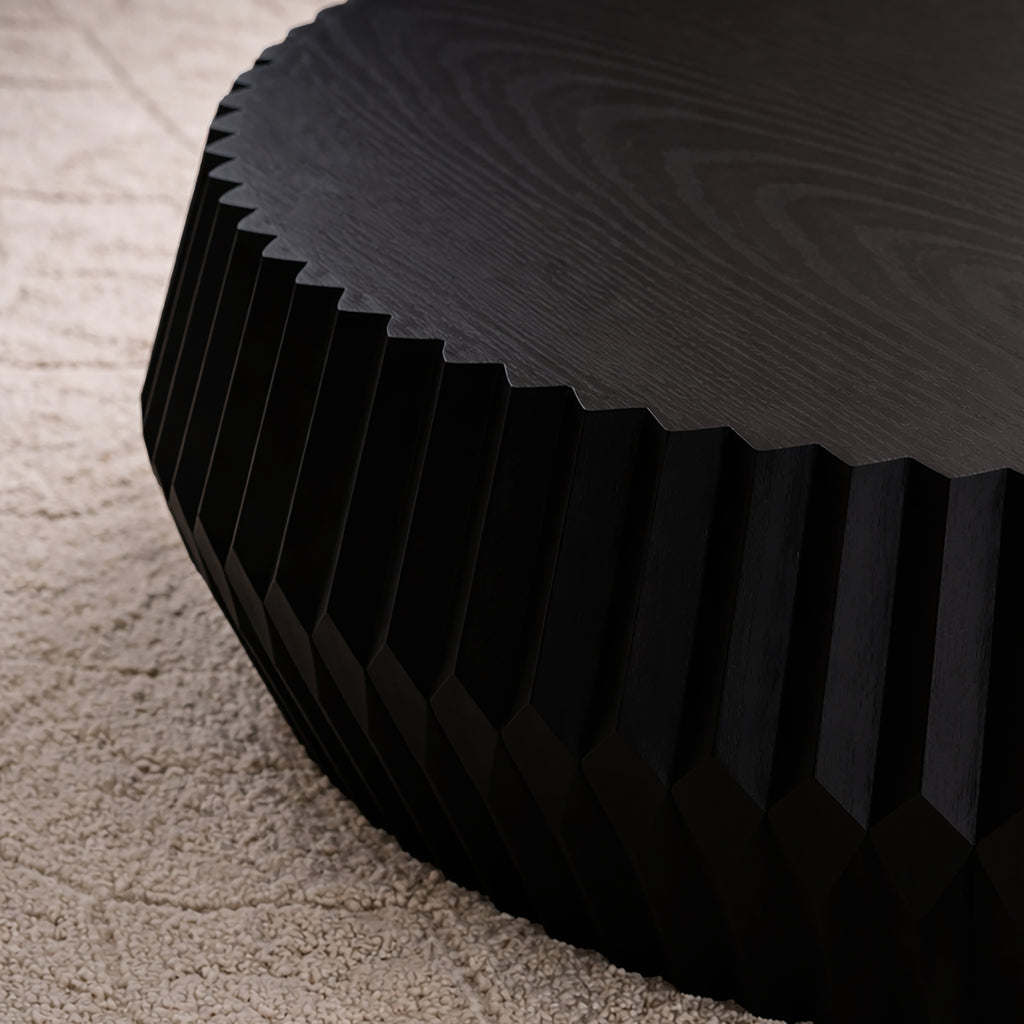 The Ebony Fluted Coffee Table is a bold, sculptural statement piece designed to elevate modern living spaces, upscale lounges, and styled event environments. Featuring a rich black finish and vertical fluted detailing. This table brings depth, texture, and architectural interest to any room.