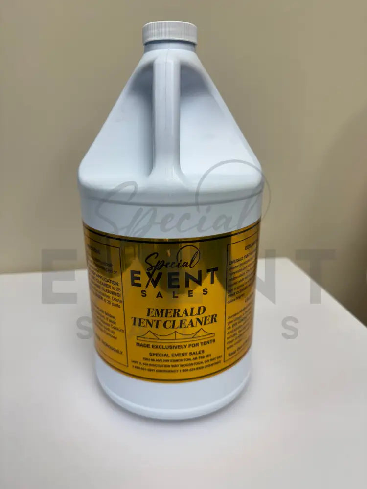 Emerald Tent Cleaner has been specially formulated by Special Event Sales to provide a effective cleaning solution for your tent tops and walls that will not damage or degrade the fabric. test
