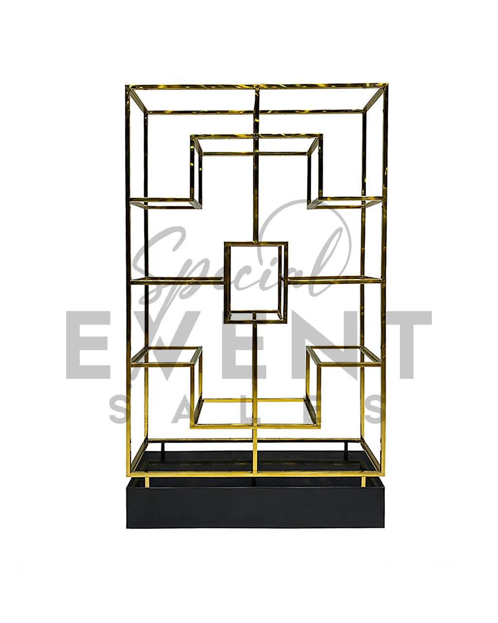 The Fenix Gold Somerset shelf provides a perfect backdrop for our Fenix Promenade Bars. Base is black color on this shelf.