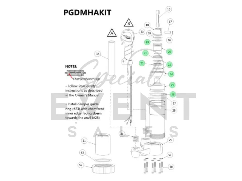 All parts required to replace the hammer & anvil assemble on a PGD3200, PGD3200X & PGD3200XPM driver.