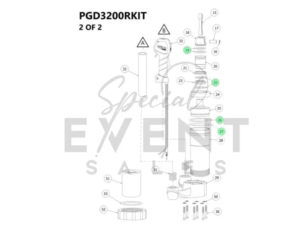 The rebuild kit is for our PGD3200, PGD3200X & PGD3200XPM drivers and includes Viton O-rings for the hammer and anvil, O-rings for the damper assembly, housing O-ring seal, and EP 0 grease. A post driver works by simply moving compressed air. We recommend you replace all O rings annually or if you notice inadequate performance. Replacing these O rings will restore the compression and performance of your driver.