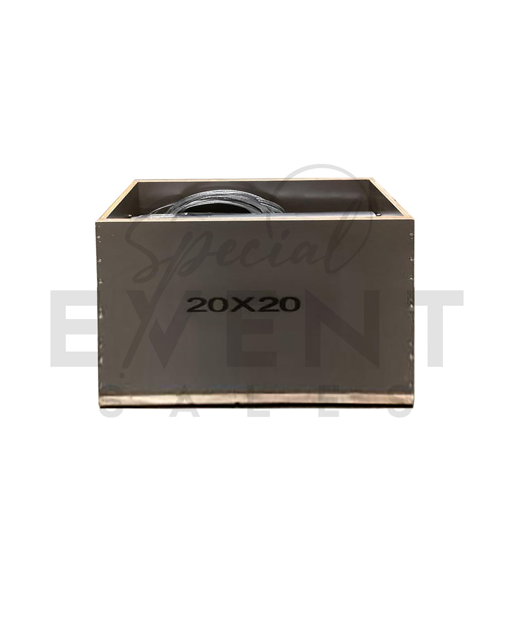 Convenient 3/4" plywood storage box for small parts that are stackable, have heavy duty chest handles and have tent size clearly marked. These boxes are invaluable for rental companies to keep their inventory organized.