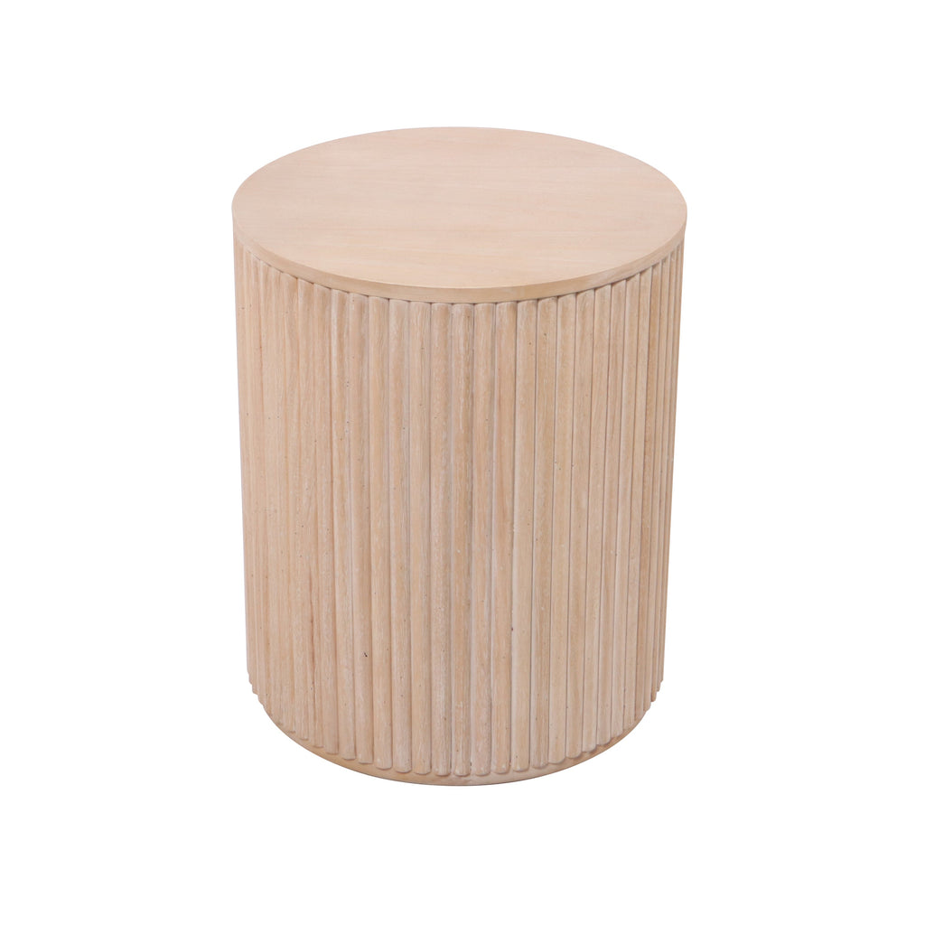 Enhance your home with the perfect balance of organic warmth A Fluted rubberwood table in a natural wood finish. The distinctive vertical ribbing on the solid wood base adds a layer of tactile, sculptural art to your living room. These tables offer versatile functionality without compromising on high-end style. This duo is designed to bring a "curated gallery" feel to any contemporary interior.