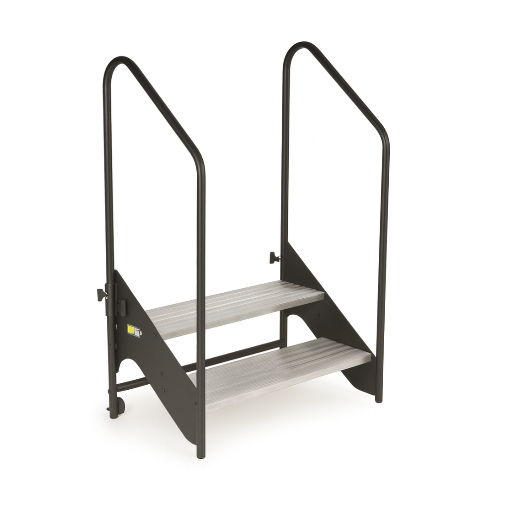 The 2 Step Tuffstage Stairs are built with non-slip safety treads and permanent dual handrails for on stage safety Steps are 39" x 11" and perfect for stage heights of 16" or 24"