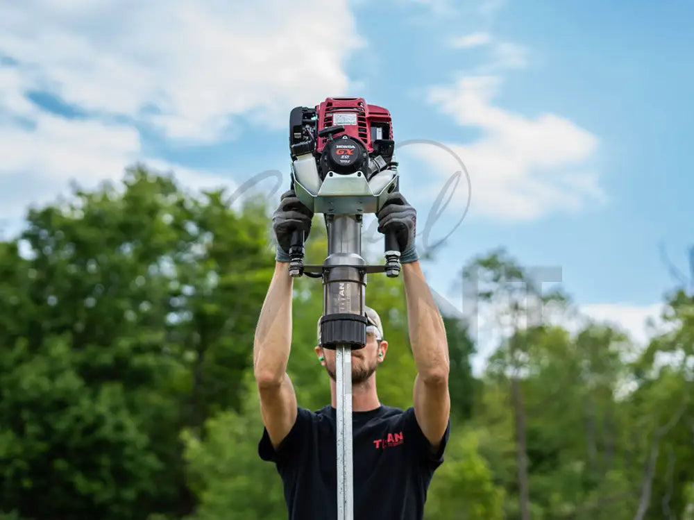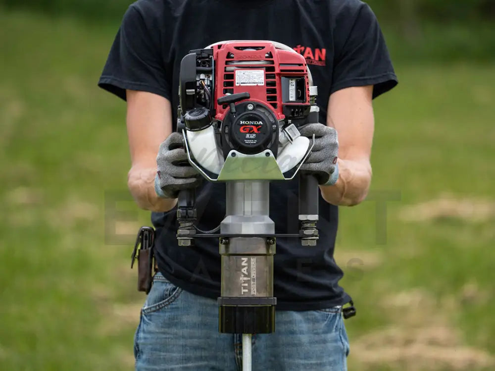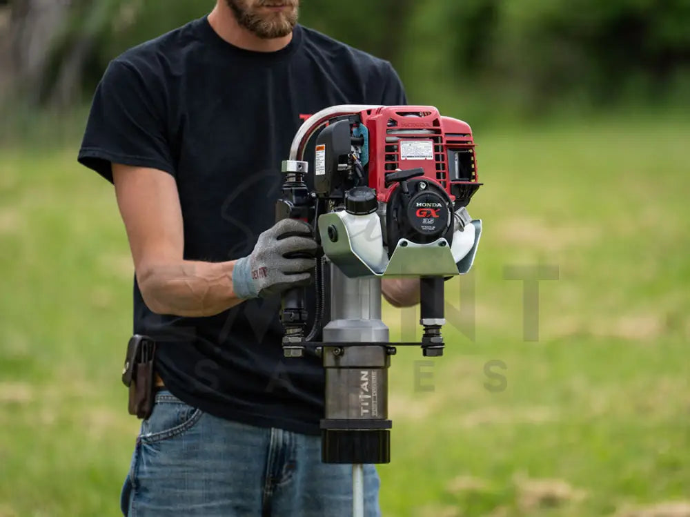 Powerful and portable gas-powered post driver. Easy to lift, move, and carry down the fence line. The PGD1032H is Titan’s hardest hitting Farm & Home Series driver with up to 50% more impact power than the other Farm & Home Series, Honda-powered drivers. The hardened steel barrel accommodates materials up to a maximum of 3.2″ in diameter.